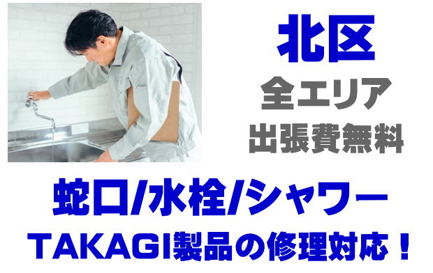 北区で水栓メーカーTAKAGIの修理業者をお探しなら当社までお気軽にお問い合わせください。蛇口の水漏れ、シャワーの故障などタカギ製に関するトラブルなら何でもご相談ください。