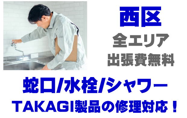 西区で水栓メーカーTAKAGIの修理業者をお探しなら当社までお気軽にお問い合わせください。蛇口の水漏れ、シャワーの故障などタカギ製に関するトラブルなら何でもご相談ください。